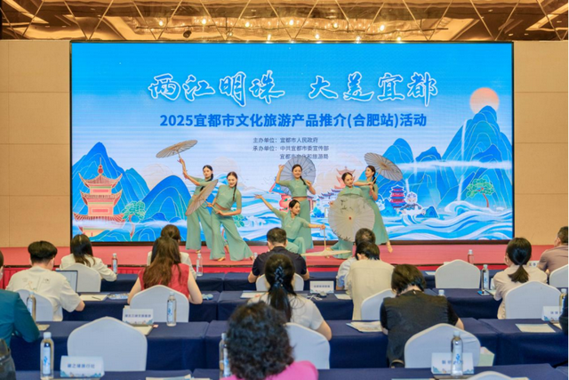 活动中,宜都市文化和旅游局、三峡千古情景区、清江湾旅游度假区、湖北三峡文旅集团、宜都礼物分别进行文旅资源推介,并介绍了宜昌市、宜都市文旅发展支持政策;合肥演员还带来了《九州同・荆楚迎宾》《皖韵楚风共天云》等文艺节目,通过多种形式让大家体验两地的自然风光之美、历史文化之韵、民俗风情之趣。