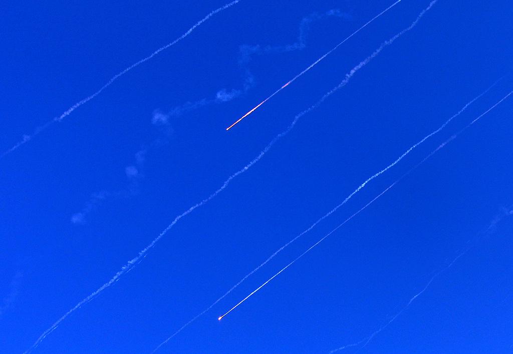 当地时间2025年6月19日,约旦河西岸,伊朗发射的导弹划过希伯伦上空 视觉中国 图
