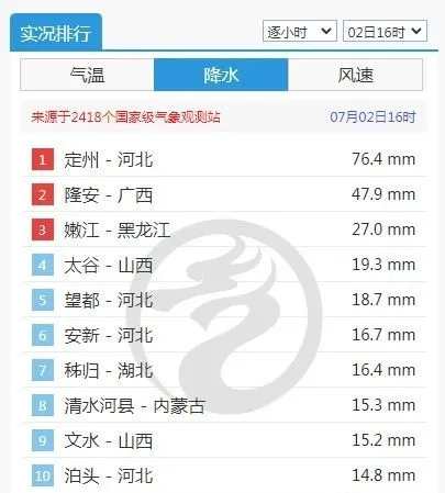 像7月2日15时至16时,河北定州雨量达76.4毫米芝麻配资,广西隆安47.9毫米,都是很强的短时强降雨。